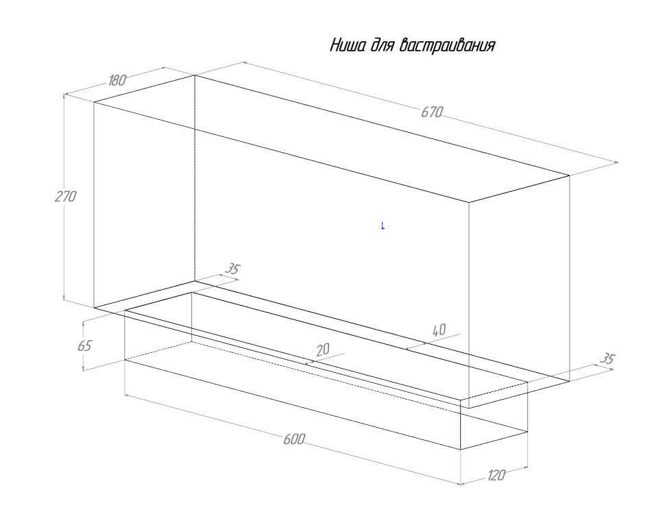Встраиваемый биокамин FLAGMAN 700 Шлифованный предназначен для встраивания в глухие ниши из гипсокартона, кирпича, пеноблоков, бетона.