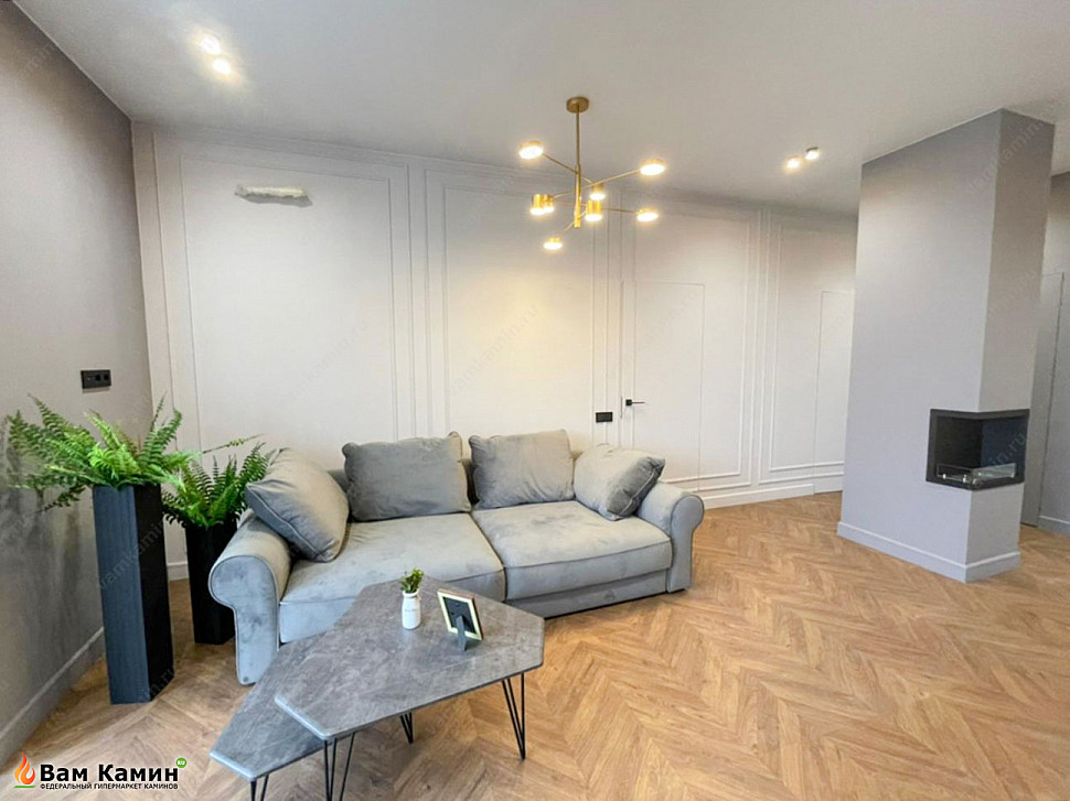 Биокамин угловой SteelHeat Leader 500 идеально подошел под готовую нишу в колонне комнаты. В итоге такой биокамин органично вписался в интерьер так, что создается впечатление будто он изначально там находился. Как видно на фото, с этим биокамином гостиная стала выглядеть еще уютнее. Линия огня в 210 мм позволяет хорошо обогревать комнату.