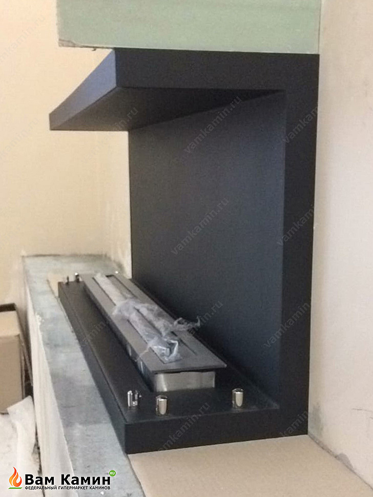 На фото биокамин фронтальный SteelHeat Leader 1000 на этапе установки. После монтажа очага и топливного блока биокамин будет отлично сочетаться с помещением и послужит дополнительным обогревательным прибором.